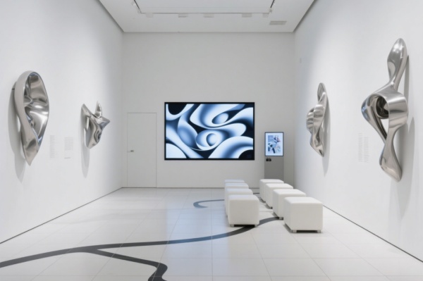 當藝術掙脫想象的繭房,以空間為畫布肆意生長,便有了這些令人沉醉的展廳現場。從冷峻金屬線條編織的現代夢境,到暖黃墻面暈染的田園詩意;從多彩光影嬉戲的時尚展臺,到經典配色里迸發的藝術張力 —— 四個風格迥異的展廳,正以各自獨特的「語言」,訴說藝術的無限可能。準備好跟隨我們的鏡頭,推開這扇通往藝術奇旅的門,沉浸式捕捉每一寸靈感閃光 ,一起解鎖展廳里的藝術密碼。